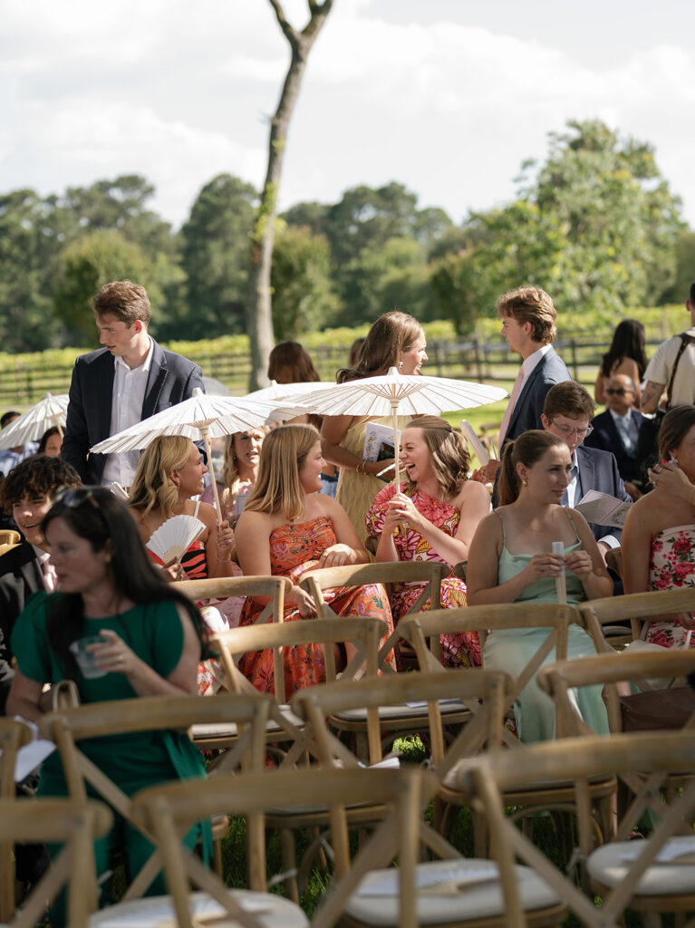 Houston heat, humidity, and seasonal shifts play a role in everything from ceremony placement to fabric selection. Shade, airflow, lighting warmth, and seating comfort are not logistical add-ons. They are design decisions.