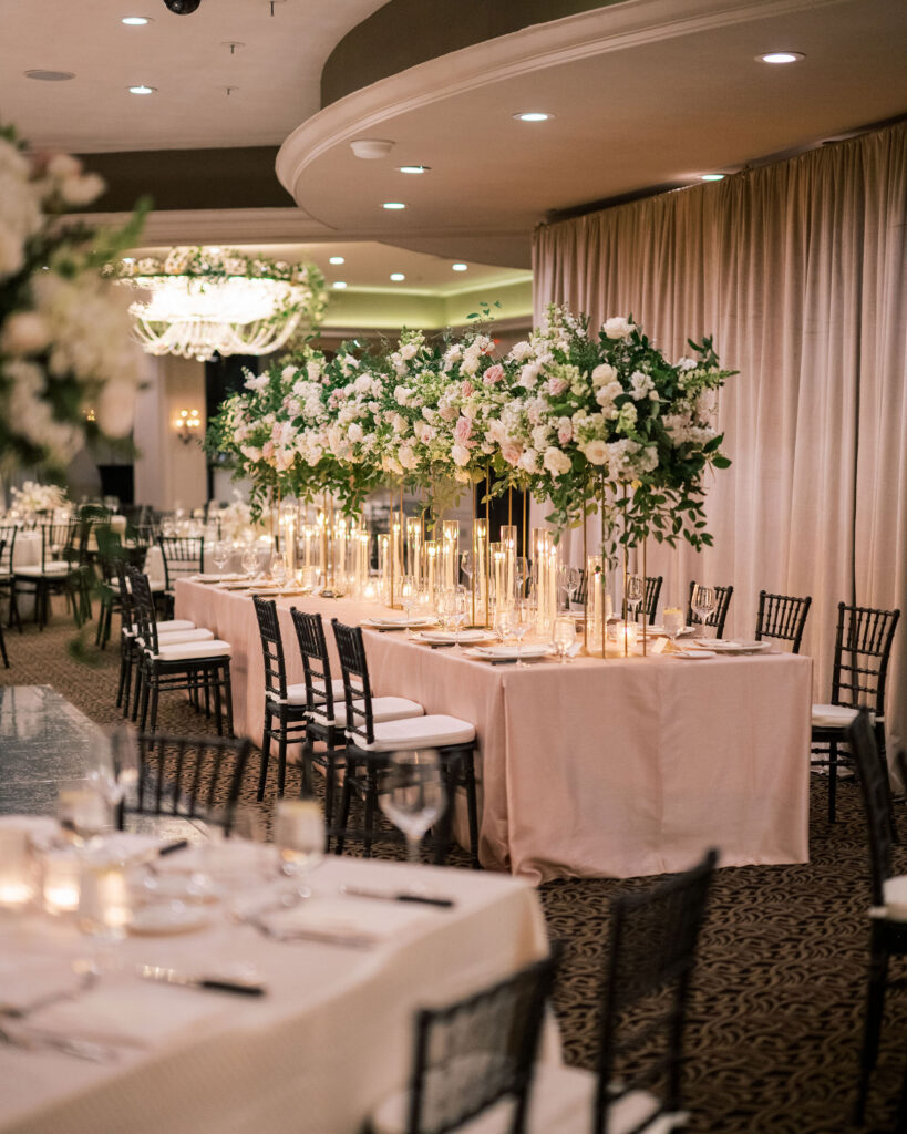 Thoughtful wedding design balances proportion, scale, and spacing so that the room feels cohesive and effortless.